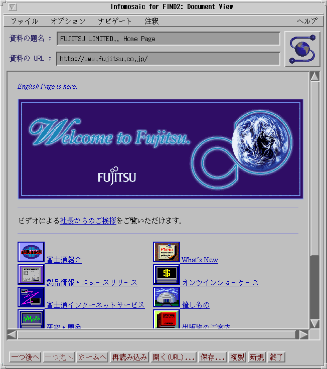 富士通のホームページ